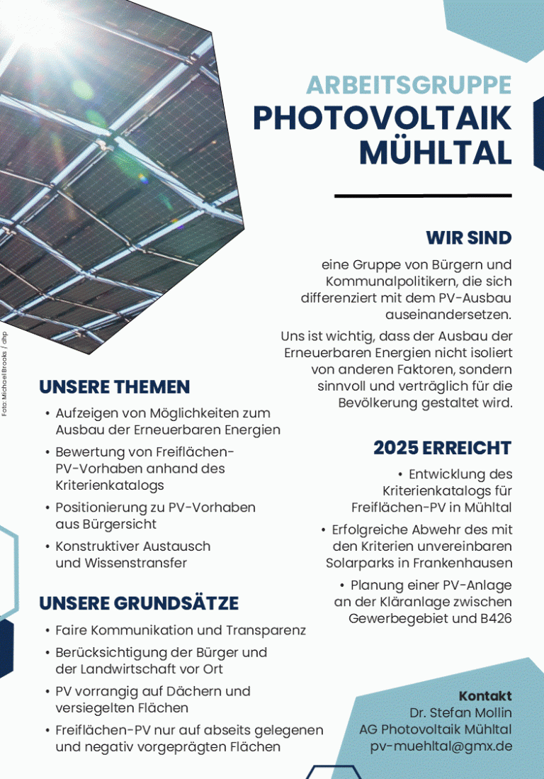 Weitere Informationen, aktuelle Projekte sowie fachliche Hintergründe finden sich auf unserer neuen Website: pv-muehltal.de.